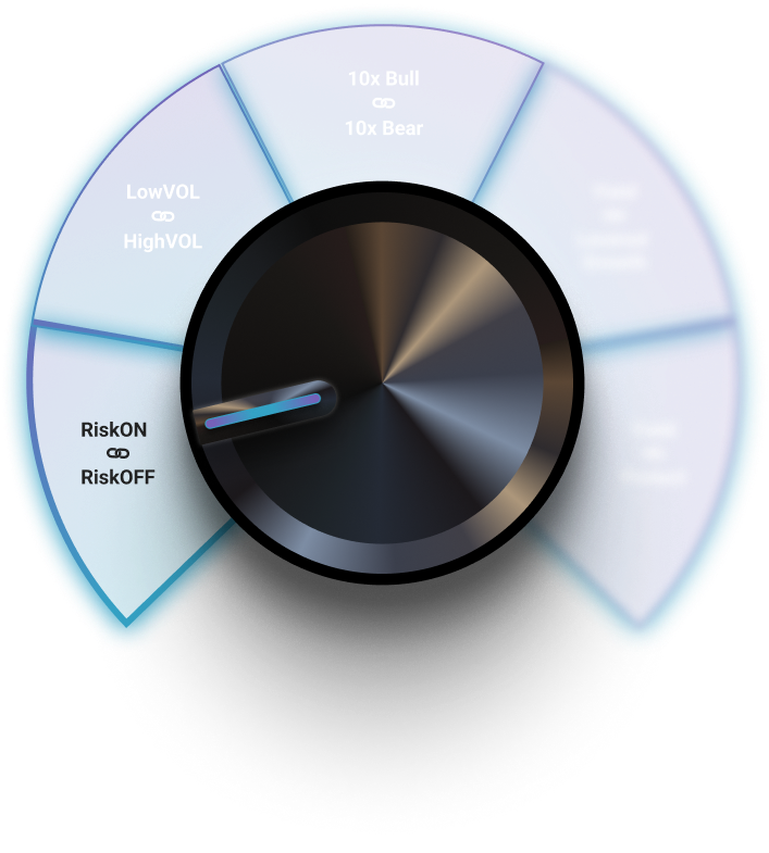 The Risk Protocol has created several types of SMART tokens with different risk-return payoffs. We launch initially with RiskON / RiskOFF and will add others on a regular cadence.